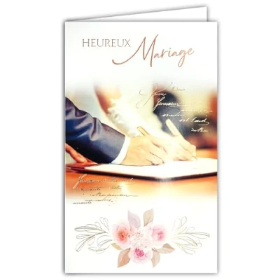 13 6169 Card with Envelope Happy Wedding Congratulations to the Bride and Groom for Couple Signing Book of Registers Town Hall Church Witnesses Their Love Pink Flowers Made in Europe
