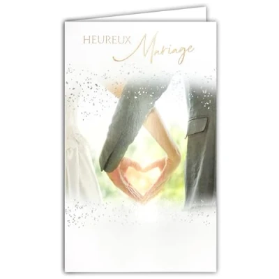 13 6170 Happy Wedding Congratulations to the Bride and Groom Card with Envelope for Heterosexual Couple Man/Woman Holding Hands 2 Heart Shaped Made in Europe