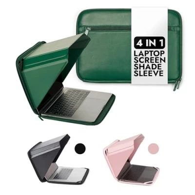 ELEVATE YOUR OUTDOOR WORKSPACE: The multi sleeve sun hood is the ultimate solution for outdoor work, reducing screen glare and reflections while you enjoy the outdoors. Whether you're a photographer, contractor, or business professional, this lightweight, portable sunshade ensures a brighter, clearer view, making outdoor work or gaming sessions more enjoyable and productive. The first Screen Shade products on the market – Patent no. D790551. PREMIUM ENVIRONMENTAL MATERIALS: Made from HEMP and VEGAN microfiber resin leather, this laptop cover is crafted from organic and recycled materials, ensuring strength and performance even in extreme heat. A perfect choice for those who value sustainability and style.