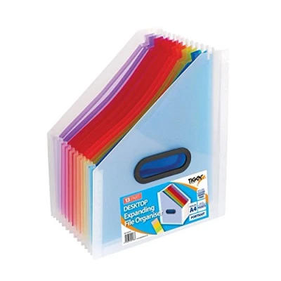 Tiger 13 part desktop expanding file organiser for A4 Keep all your work neat and easily accessible with the included coloured index tabs! A must have for the office or just at home, never lose your work again & keep on top of all your upcoming tasks. Portrait design, perfect size to fit on your desk or side at home. Approx: 33cm x 22cm
