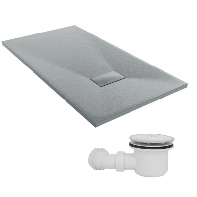 Shower Tray Features: Durable Construction: SMC materials are known for their strength and resilience, making the shower tray highly durable and long-lasting. Elegant Appearance: The stone pattern provides a sophisticated look, adding a touch of luxury to any bathroom setting. Non-Slip Surface: Designed for safety, the textured finish helps prevent slipping, ensuring a safer showering experience. Lightweight Design: Despite its robust make, an SMC shower tray is lightweight, making installation easier and more manageable. Easy to Clean: The smooth, non-porous surface prevents the accumulation of grime and is easy to maintain, enhancing hygiene. Eco-Friendly: SMC materials can be produced using environmentally friendly processes, making it a sustainable choice for conscious consumers. Specification: -Tray Type: Rectangle -Colour: Anthracite -Material: SMC -Non-Slip surface -Height: 32mm -Length: 1300mm -Width: 700mm -Waste Hole Size: 90mm -Waste Location: Side of Tray -Drain Cover
