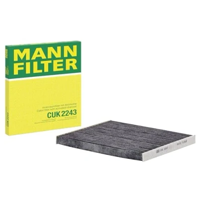 MANN-FILTER Cabin Air Filter CUK 2243 / Dimensions (mm): A = 222; B = 268; H = 21 / Premium Filter in Original Equipment Quality High-quality MANN-FILTER cabin filters with active carbon - nearly 100% protection from particles like pollen, diesel soot & tyre abrasion / Additional protection from harmful gases & unpleasant odour The trated highly-effective activated carbon gives protection against harmful gases such as ozone, nitrogen oxide or sulphur dioxide and eliminates unpleasant odours during the entire service interval Looking to find the correct filter? Select: brand, model, vehicle type, and engine type above to see which one fits your vehicle MANN+HUMMEL complies with REACH-regulation + supports the goal of Improved health and safety through the design, manufacturing, usage, disposal and recycling of our products