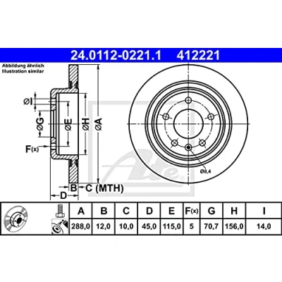 13517857, 13521008 Brake disc ATE 24.0112 0221.1 288mm 12,0mm 5 115,0mm solid...