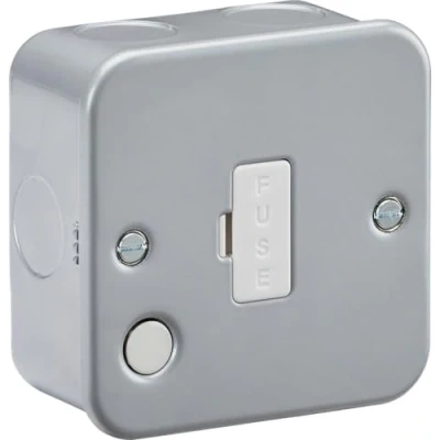 Heavy duty robust construction with durable powder coated finish, projecting just 45mm from wall. Constructed from high-quality steel, supplied with back box. 13A Rated Unswitched Fused Spur With Flex Outlet, Manufacturer: Knightsbridge