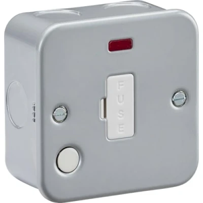 Heavy duty robust construction with durable powder coated finish, projecting just 45mm from wall. Constructed from high-quality steel, supplied with back box. 13A Rated Unswitched Fused Spur With Neon With Flex Outlet, Manufacturer: Knightsbridge