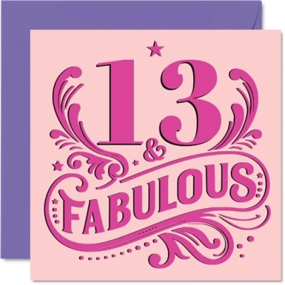13th Birthday Cards for Girls Fabulous Happy Card 13 Year Old Girl Niece Cousin Goddaughter Sister, 145mm Bday Greeting