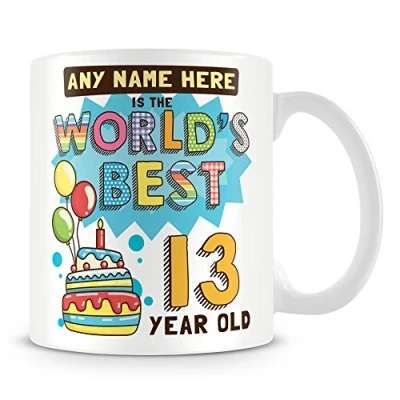 13th Birthday Gift for Boys Personalised Mug/Cup Add Name Worlds Best Design Blue
