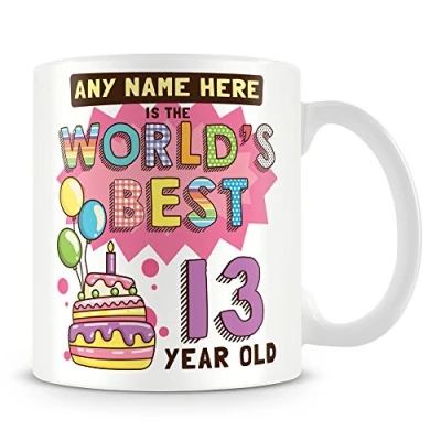 13th Birthday Gift for Girls Personalised Mug/Cup Add Name Worlds Best Design Pink