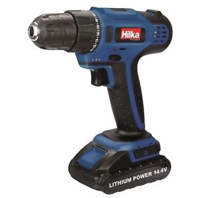 General description HILKA Cordless Drill is a versatile 14.4V Lithium Li-Ion driver screwdriver designed for both professional and DIY use. It features an ergonomic soft grip handle for comfort during extended use and a 10mm keyless chuck for easy bit changes. This drill offers two functions: percussion drilling and screwdriver capabilities, making it suitable for a variety of tasks. Technical specifications Voltage: 14V DC (Li-ion, 1300mAh) No-load speed: 0-750 RPM Torque settings: 17+ Maximum torque: 15 Nm Chuck size: 10mm keyless chuck with spindle lock Forward/reverse function Other information Fan cooled motor with electronic brake for precise work LED work light and battery indicator level Supplied in a color box with battery and charger 1 Year Warranty Included