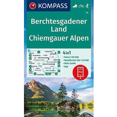 14 BERCHTESGADENER LAND CHIEMGAUER ALPEN: 4in1 Wanderkarte mit Aktiv Guide und 1:25000 Karten, inklusive Kartenbereich zur offline Verwendung in der KOMPASS App. Fahrradfahren. Skitouren.
