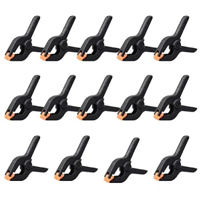 High hardness nylon material and high toughness spring, anti-slip serration inside the clip can increase the clamping force, the clamping is stable and durable Orange adjustable chuck can change the angle according to the object, which can effectively protect the surface of the working object from damage The pattern on the handle increases the frictional force, and the hand feels comfortable when grasped hard, non-slip and firm Strong spring clamps is the ideal tool for photographic muslin backdrop screen, reflective board, woodworking, photo, or other handicraft canvas The set includes 14 2-inch spring clips, Manufacturer: Yoicn Lth