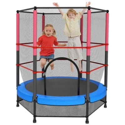 140cm Secure Kids Trampoline,with Safety Enclosure& Reinforced Steel Frame,Indoor Outdoor Toddler Trampoline for Children 3 10Years (Blue)