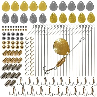 【SPINNER KIT 】140pcs Spinner Rigs Makine Kit includes 20pcs spinner spoons, 20pcs treble hooks, 20pcs wire shaft, 20pcs clevises, 20pcs lure bodies, 40pcs beads. Total 140pcs accessories for 20pcs complete spinnerbait 【OUTSTANDING QUALITY】All the spinner spoons, lure bodies and clevises are made of copper. Lacquer coated for durability and shine, not easy to rust, can be reused multiple times. Stainless steel fishing plier makes it more convenient to make your own lures 【COPPER SPOON 】Well made copper spoons. When the thread is pulled, spoons will rotate and generate noise and water marks. Coupled with the reflective effect of the spoons in the water, which attracts the attention of the fish and greatly increases the chance of the fishing 【TARGET FISH】 Great for Bass, Trout, Perch, Panfish, Perch, even pike and salmon in freshwater like ponds, lakes, creeks, rivers and big reservoirs, and for those water filled with weeds and grass 【DIY PLEASURE】This kit is specially designed for fishing lovers. Take it to create your own perfect lures