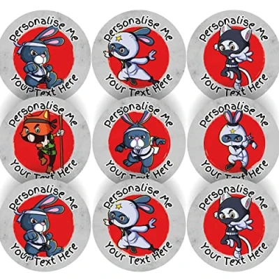 144 Ninja Animal Karate Personalised 30mm Reward Stickers for School Teachers (UNIQUE)