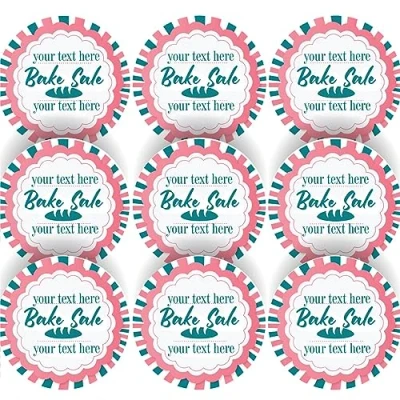 144 Personalised Bake Sale 30mm Glossy Stickers Labels
