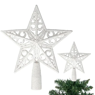 14.5cm White Glitter Star Christmas Tree Topper Shatterproof for Decorations Xmas Treetop Crown Holiday Ornament