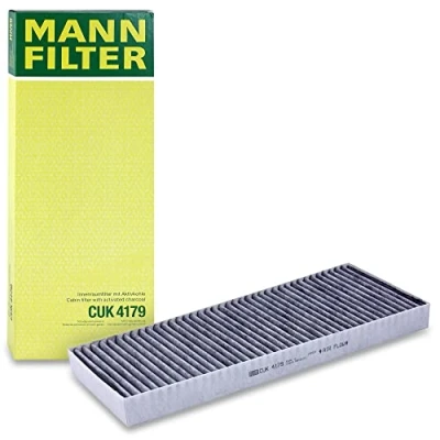 MANN-FILTER Cabin Air Filter CUK 4179 / Dimensions (mm): A = 405; B = 164; H = 33 / Premium Filter in Original Equipment Quality High-quality MANN-FILTER cabin filters with active carbon - nearly 100% protection from particles like pollen, diesel soot & tyre abrasion / Additional protection from harmful gases & unpleasant odour The trated highly-effective activated carbon gives protection against harmful gases such as ozone, nitrogen oxide or sulphur dioxide and eliminates unpleasant odours during the entire service interval Looking to find the correct filter? Select: brand, model, vehicle type, and engine type above to see which one fits your vehicle MANN+HUMMEL complies with REACH-regulation + supports the goal of Improved health and safety through the design, manufacturing, usage, disposal and recycling of our products