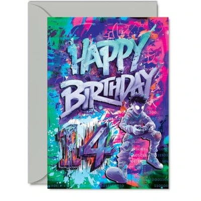 14th Birthday Cards for Boys Girls Epic Gamer Happy Card 14 Year Old Boy Girl Son Grandson Niece Brother, 5x7 Inch Bday Greeting
