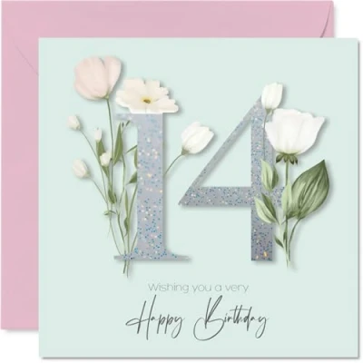 14th Birthday Cards for Girls Fancy Floral Flowers Happy Card 14 Year Old Girl Great Niece Daughter Goddaughter Granddaughter, 145mm Bday Greeting
