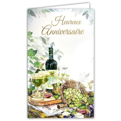 15 6580 Happy Birthday Card for Men White Wine Grape with Envelope Format 12 x 19.5 cm Space Writing