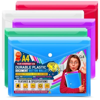 Capacity : A4 Folders can take up-to 150 sheets and A5 can take up to 50 sheets in each folder CLEAR DESIGN- No need to stick a label on every folder to remind you what files in it! The transparent design allows you to see what's inside through the translucent shell, which can effectively classify products and find files at a glance. EXTRA-DURABLE MATERIALS - These colored file folders from G4GADGET are quality-crafted of heavy-duty plastic, with durable Press stud closure prevents document loss. The plastic construction prevents it from getting dirty, ripped, A4 / FOOLSCAP SIZED CLEAR POUCH 360MM X 240MM - Beneficial for personal, professional, and academic use, this plastic file folder is an efficient way to store vital records and paperwork. Its size makes it practical to hold and carry standard size documents. IDEAL : Ideal for work and carrying assorted papers safely and carefully in a backpack or briefcase. These folders are great for keeping documents, notes and receipts tidy. The different colours are helpful too in differentiating between what documents are kept in what pocket. Strong and long lasting TRAVELLING FILING CABINET : All travel documents kept together you could see which document you needed when you needed it, it weighs virtually nothing, and kept everything together, keeping papers neat and clean LONGEVITY : These style of wallet ensure longevity as they are made from a higher density plastic These are great for using to put all you papers and passports in the going on holiday ORGANISATION : These work great to keep all my paperwork organised Perfect to keep safely stored, visible and to hand Really useful for sorting and separating paperwork
