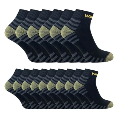 When you're working hard in steel toe cap boots, you need a sock that can keep up with you. These Men's 15 Pair Multipack Short Work Socks have got you covered with soft cotton and hard wearing durability. Made from soft cotton fibres and designed for low cut ankle style, these socks are light and breathable as well as being soft, which will ensure maximum comfort while taking everything your working day can throw at them. The reinforced heel and toe ensures strength and durability which reduces irritation during the day, while the stretch top is comfortable on your ankles so they won't bunch up or fall down while working hard at the job site. These socks are not only durable and comfy but they come in a 15 multi pair pack which makes these excellent value for money, ensuring you have enough hard wearing work socks to last you all year! These work socks come in 15 pairs per pack and are made from: 38% Cotton, 42% Polyester, 2% Rubber 1% Elastane. They are available in Men’s one size 6-11 UK and are fully machine washable.