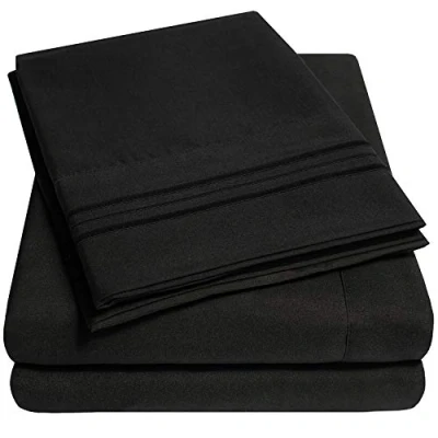 STAY IN PLACE FITTED SHEET - Built-in elastic corner straps keep your fitted sheet securely in place all night No more slipping or bunching, perfect for restless sleepers and adjustable beds. SOFT, BREATHABLE & DURABLE - Ultra soft hotel grade fabric provides superior comfort, breathability and durability, perfect for all seasons, keeping you cool in summer and cozy in winter. DEEP POCKETS - Fits mattresses up to 16" deep with elastic all around the fitted sheets. Sourced from the highest quality microfibers with the widest selection of bright and rich colors that will certainly add to your bedroom decor. These sheet sets are also wrinkle and fade resistant to give your bed a new ironed look every time ELEGANT THREE LINE EMBROIDERY - The pillowcases feature elegant triple line embroidery for a touch of luxury. Available in California King, Full, Twin, Twin XL, Split King and RV Short Queen. WRINKLE, FADE & STAIN RESISTANT - Designed for easy care and care, these sheets are machine washable, dry quickly, and resist wrinkles, fading and shrinkage, perfect for busy households.