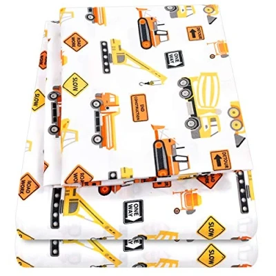 1500 Supreme Kids Bed Sheet Collection Fun Colorful and Comfortable Boys Girls Toddler Sets Deep Pocket Wrinkle Free Soft Cozy Bedding Full, Construction