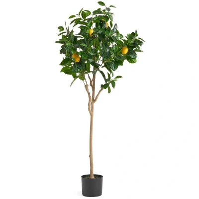 General description This 150cm Artificial Lemon Tree is a premium quality addition to your home decor. With its realistic appearance and botanically accurate foliage, it brings a touch of nature indoors. The tree is fully potted in a weighted plastic pot, making it stable and ready to display. Technical specifications Height: 150cm Width: 50cm Depth: 50cm Pot diameter: 16cm Pot height: 15cm Installation Ready to display upon arrival. Can be placed inside a larger planter for added realism. Cover with bark or soil to enhance the natural effect. Usage This artificial tree is designed for indoor use only, making it perfect for enhancing your living space without the maintenance of a real plant.