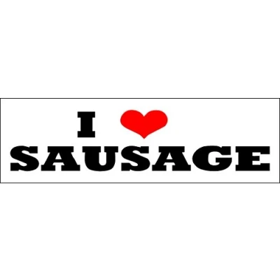 I LOVE SAUSAGE - STICKER 150mm x 50mm Self adhesive vinyl Remove backing film and apply to dry, smooth, oil free surface. Digitally printed and laminated for extra durabillity