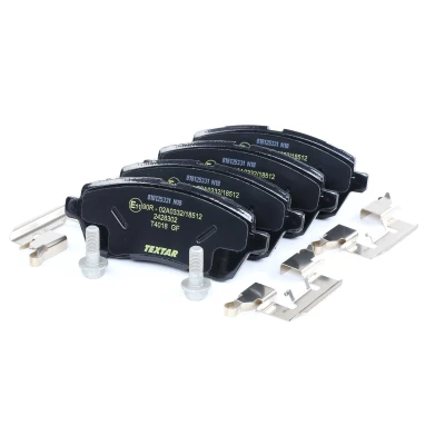 2428302; Brake pad set; TEXTAR; not prepared for wear warning indicator; for FORD, MAZDA; 04465B1310, 04491B1030, 04491B1031, 04491B1032, 1550219, 1676630, 1719275, 1749322, 1788734, 1848518, 1855307, 2614604, 8V512K021AA, 8V512K021AB, 8V512K021BA, 8V512K021BB, 8V512K021CA, AE8Z2001A, AE8Z2001B, AE8Z2001C, ME8V5J2K021AA, MEMV5J2K021A2A, DNY03328Z, CU2Z2V001A, D0YN3328Z, 5581071L50, 5581071L50000, 2428317614