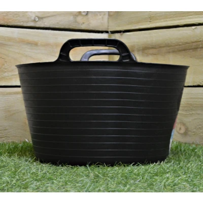 Durable, lightweight and multipurpose tub with carry handles. The flexibility makes it easier to carry and can be used for a number of household and garden tasks. Made from polypropylene in black. Capacity: 15L. Dimensions: Bottom D28cm x Top D35cm x H25 (without handles 20cm)