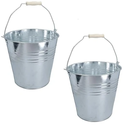 15 Litre galvanised steel bucket - 2 pack Wooden handle for comfort and grip when moving Seamed sides for maximum strength and durability Galvanised steel so suitable for both indoor and outdoor use Carrying BBQ ashes, garden refuse to all general cleaning