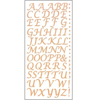 15mm Glitter Script Letter Stickers Self Adhesive Alphabet Birthday Card Embellishments (Rose Gold)