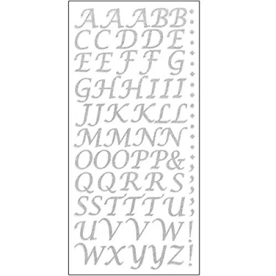 15mm Glitter Script Letter Stickers Self Adhesive Alphabet Birthday Card Embellishments (Silver)