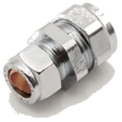 The JTM Chrome Compression Reducing Coupler (15mm x 12mm) is a practical and versatile solution for connecting pipes of different sizes. Featuring high-quality compression ends, it ensures a secure and leak-free fit without the need for soldering or additional tools. Its sleek chrome-plated finish not only enhances durability but also adds a polished, professional appearance to your installation. This coupler is designed for use in both hot and cold water services, making it ideal for heating systems and domestic plumbing applications. Available in a range of sizes, it offers compatibility with various setups, ensuring flexibility for your project requirements. The 15mm x 12mm reducing coupler is particularly suitable for situations where a seamless connection between pipes of varying diameters is needed. With its robust construction and ease of installation, the JTM Chrome Compression Reducing Coupler is a reliable choice for any plumbing task.. JTM Chrome Compression Reducing Coupler - 15mm x 12mm Brass Chrome Plated