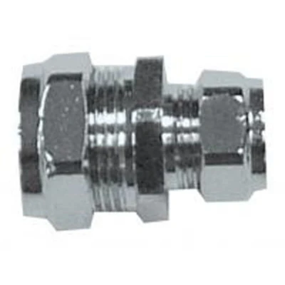 The JTM Chrome Compression Reducing Coupler, 15mm x 8mm, features compression ends and is chrome plated. It is designed for use in hot and cold water services, suitable for domestic heating installations. The product is available in various sizes, providing flexibility for different piping needs. Its durable chrome finish ensures longevity and reliability in installations. This reducing coupler is ideal for efficient and secure plumbing solutions in households, offering compatibility with different piping configurations. Suitable for both hot and cold water applications, it serves a versatile role in ensuring effective water flow and connection in domestic settings.. JTM Chrome Compression Reducing Coupler - 15mm x 8mm Brass Chrome Plated