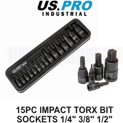15pc Impact Torx Bit Socket Set 1/4 3/8 1/2 T6 T70 TRX Star US Pro Industrial