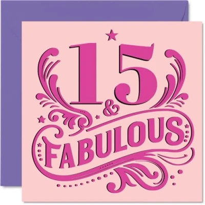 15th Birthday Cards for Girls Fabulous Happy Card 15 Year Old Girl Daughter Step Cousin Niece, 145mm Bday Greeting