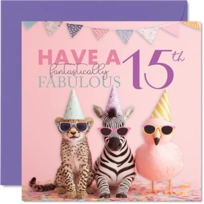 15th Birthday Cards for Girls Fantastically Fabulous Happy Card 15 Year Old Girl Granddaughter Step Daughter Great Niece Niece, 145mm Bday Greeting