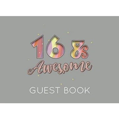 16 & Awesome Guest Book: Grey Book for 16th Birthday Party. Fun gift someone’s birthday, original present a friend or family member