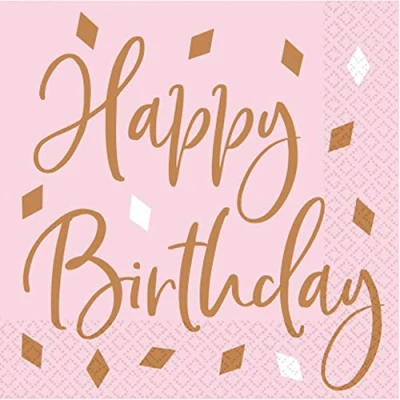 Beautiful blush pink napkin with rose gold diamond pattern 2 ply tissue 33cm lunch napkin size "Happy Birthday" message Co-ordinating tableware party range available, Manufacturer: Amscan