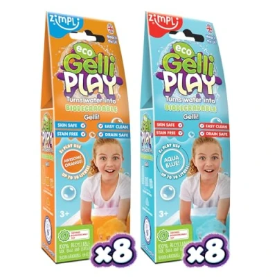 16 x Eco Gelli Play from Zimpli Kids, Magically turns water into thick, colourful goo, Children’s Montessori Preschool Toy, Friendly, Environmentally Safe, Recyclable Kid Sensory Gift