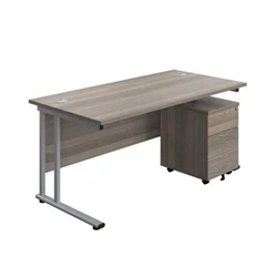 1600X800 Twin Rectangular Desk Grey Oak Silver + Mobile 3 Drawer Ped