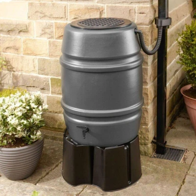 168L Standard Water Butt, Grey Rain Barrel Collection, Includes With Tap & Lid (Stand Not Included)