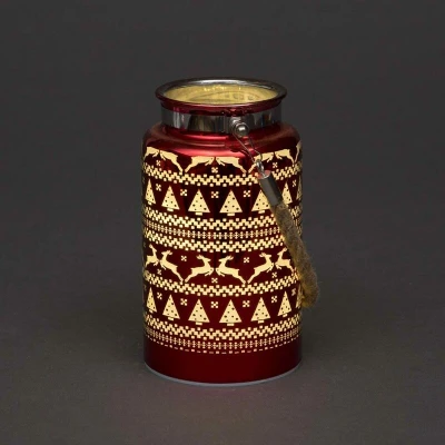 16cm Christmas Decorated Jar Table Skandi Design Red Lantern
