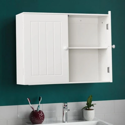 General description This Hanging Bathroom Storage Cabinet is designed to enhance your bathroom decor while providing ample storage space. Made from high-quality MDF material with a smooth white finish, it is lightweight, waterproof, fire-retardant, moisture-proof, and non-toxic. The cabinet features a durable and stable structure, making it a reliable choice for organizing bathroom supplies. Technical specifications Product Type: Bathroom wall/floor storage cabinet with 2 doors Product Size: 23.6" (L) x 6" (W) x 20" (H) Product Weight: 8.26 kg / 18.2 lbs Weight Limit: 5 kg per shelf Color: White Material: MDF Finish: Powder Coated Paint Installation Installation type: Wall-mounted or floor-standing Includes wall plugs for mounting Requires simple assembly with a screwdriver Assembly time: 5-10 minutes Assembly instruction sheet included Usage Perfect for storing bathroom supplies, kitchen items, or decorative pieces Adjustable partition height for customized storage Magnetic door for
