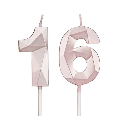 16th Birthday Candles, Rose Gold Number Candles Decoration, Happy Cake Toppers, for Parties Weddings Company Anniversaries (Rose Gold, 16)
