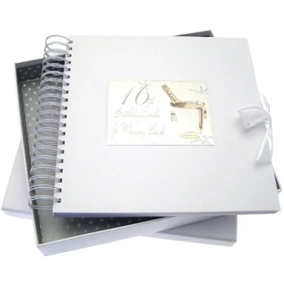 Beautiful handmade 16th Birthday Champagne Bucket card & memory book Spiral bound allowing the book to expand and be filled with cards and other special memories Includes approximately 40 blank pages and presented in a white gift box with a lid Hand finished with gorgeous diamantes and sparkling glitter The perfect gift for your special occasion