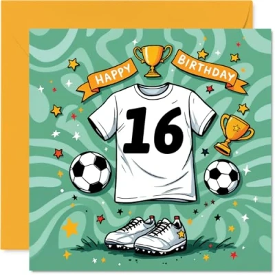 16th Birthday Cards for Girls Boys Football Shirt Happy Card 16 Year Old Girl Boy Cousin Daughter Grandson Son, 145mm Bday Greeting